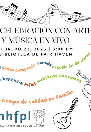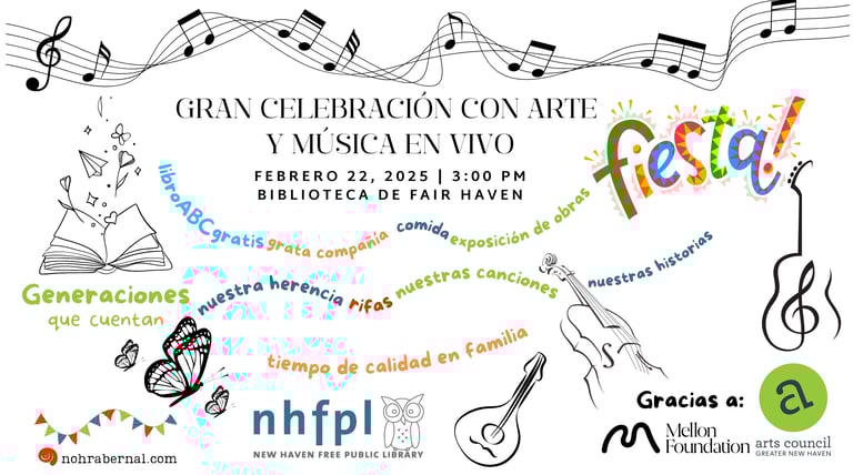 Gracias a la Mellon Foundation y al Arts Council de New Haven, "GENERACIONES QUE CUENTAN" ofrece de Marzo de 2024 a Febrero de 2025 actividades GRATUITAS Y EN ESPAÑOL para las familias en la Biblioteca Pública de Fair Haven, entre ellas: